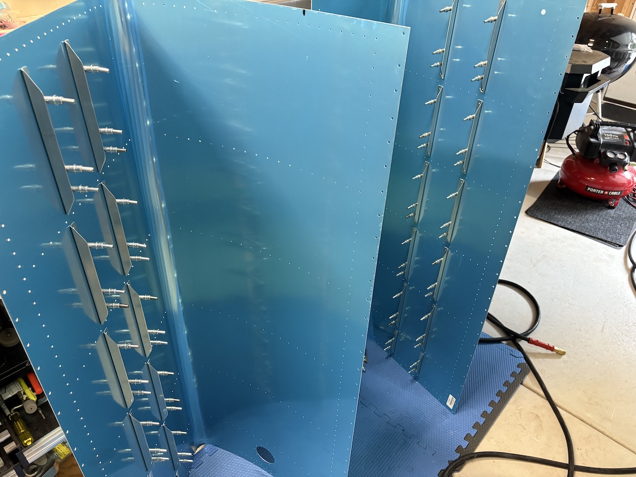 I got both tank skins and stiffeners drilled and then I put the tank baffles on the spars and fit the skins on. This was a bit confusing as the instructions reference a step that has previously been deleted from the instructions because they do some extra part prep at the factory now. Fortunately, Ryan from Ryan Flys does a good job of lamenting this but also clearing things up.