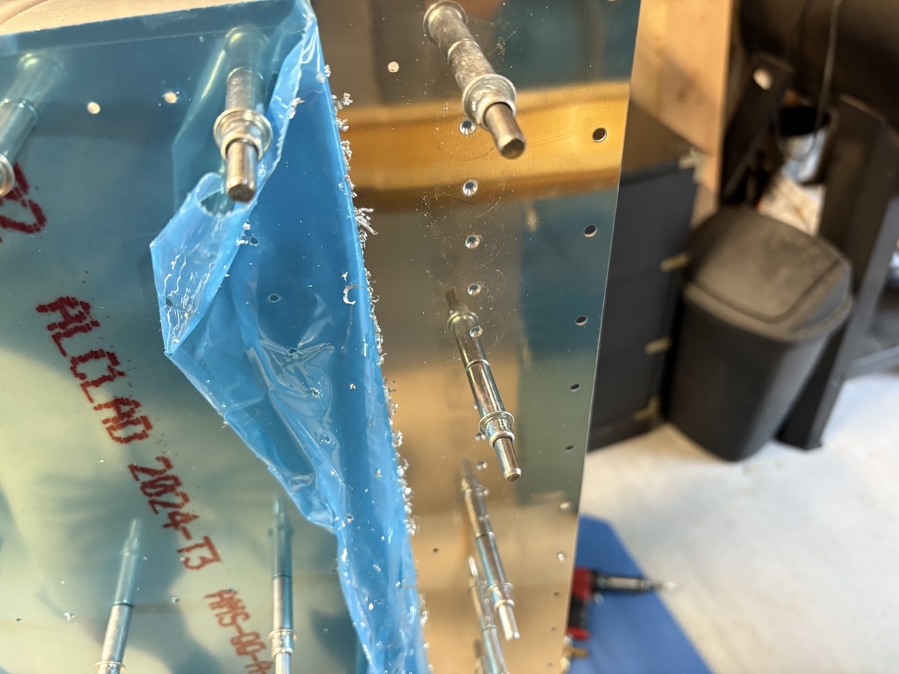 Kept working on the tanks this morning by finishing up the match drilling and then countersinking both tank skins for the flush head rivets that attach the skins to the baffles. These are countersunk rather than dimpled to make installing the baffle with the tank sealant easier. It was a huge amount of countersinking but it's now done!