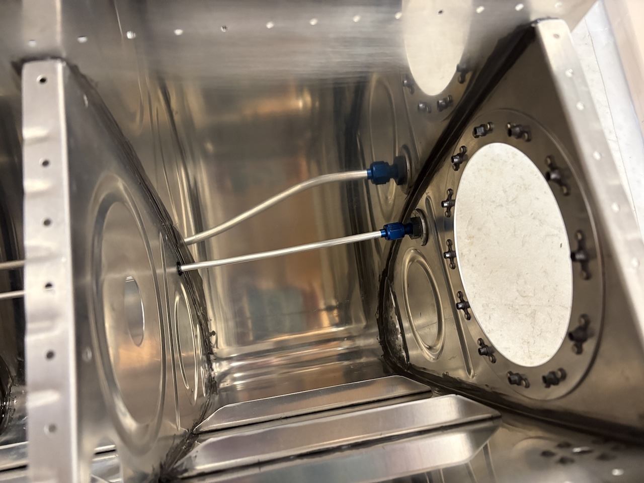 Here's the right tank inboard side with the vent fittings installed.