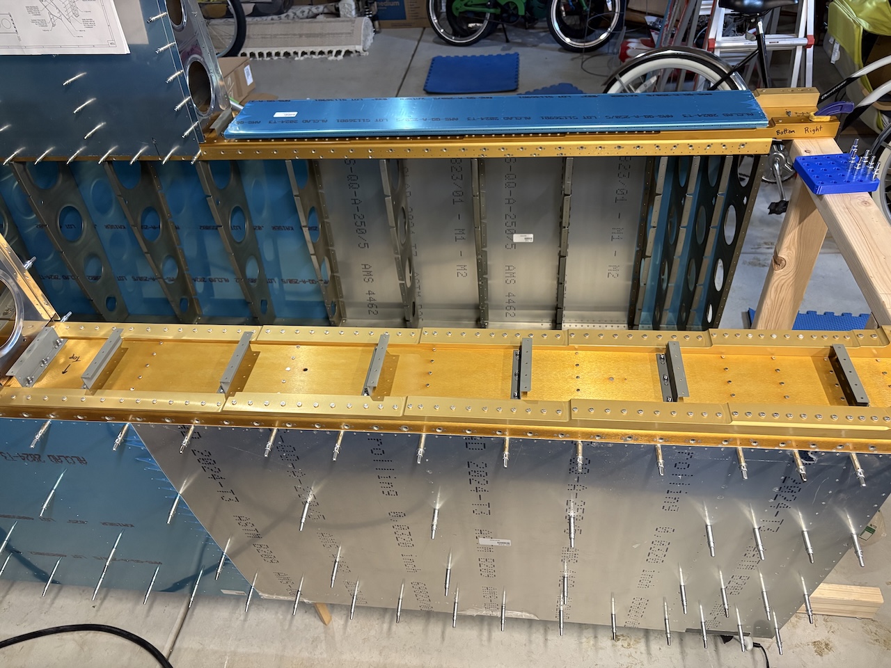 I didn't take a picture of the end state for some reason but the tank skins and baffles are currently on the spars.
