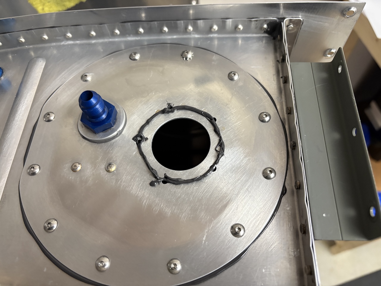 I did the old paper funnel application method and it was easy, clean, and effective. I mixed up 16.5 grams of sealant and there was quite a bit left over. Here I have applied the bead for the tank access panel.