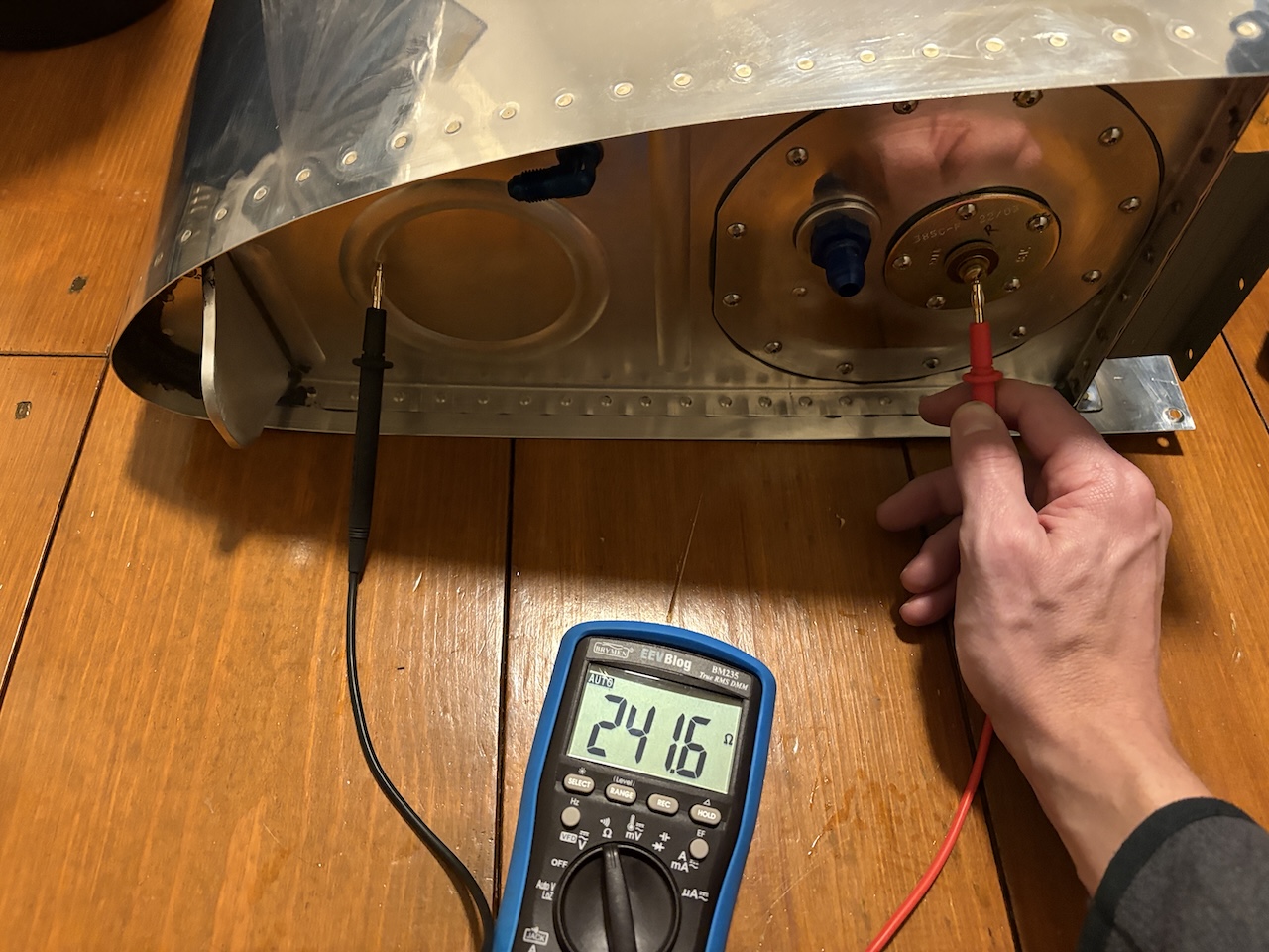 I tested the sender resistance at its limits to make sure it was hitting the numbers it should have been. Here it is in the fully empty position reading over 241.6 Ohms.