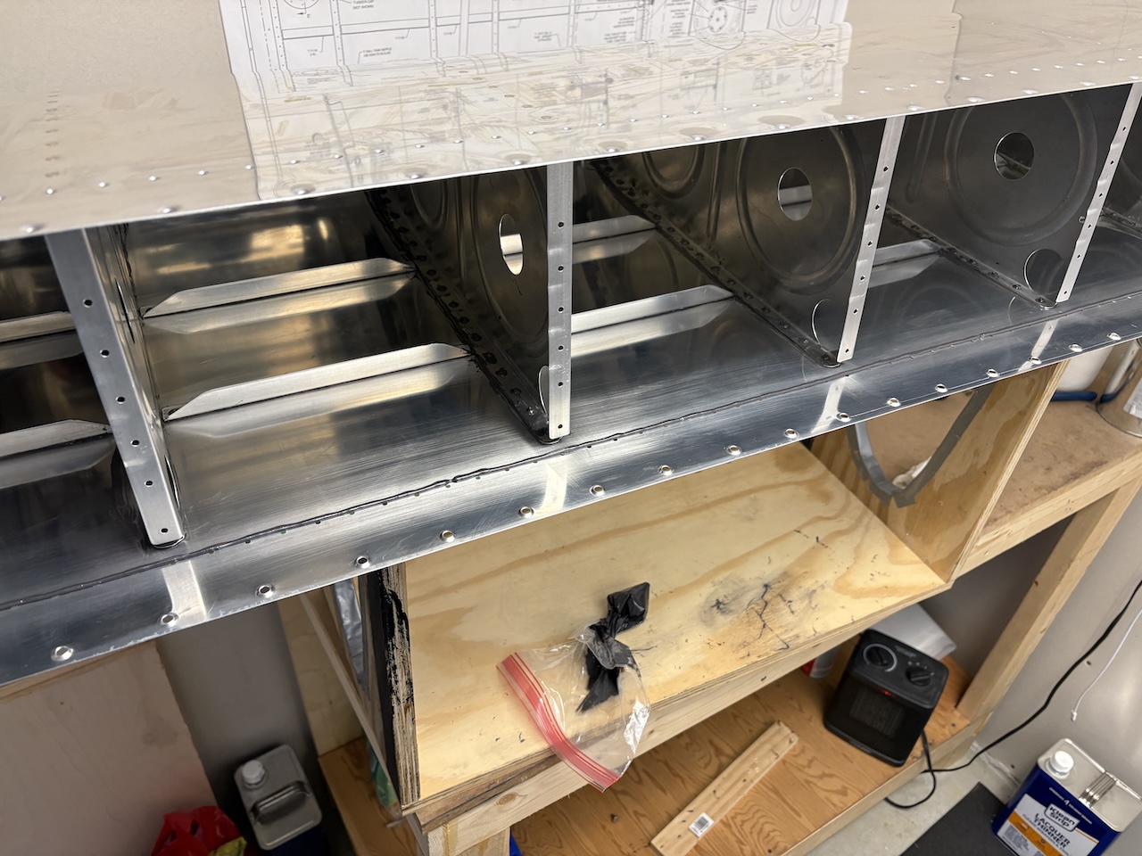 I didn't get all the Z-brackets attached, just the inboard and outboard ones. I will probably grind down my rivet puller to make getting those on easier than using a wedge, which kind of fell apart... Attaching those brackets and doing the access panel cover and fuel float should be manageable next time.