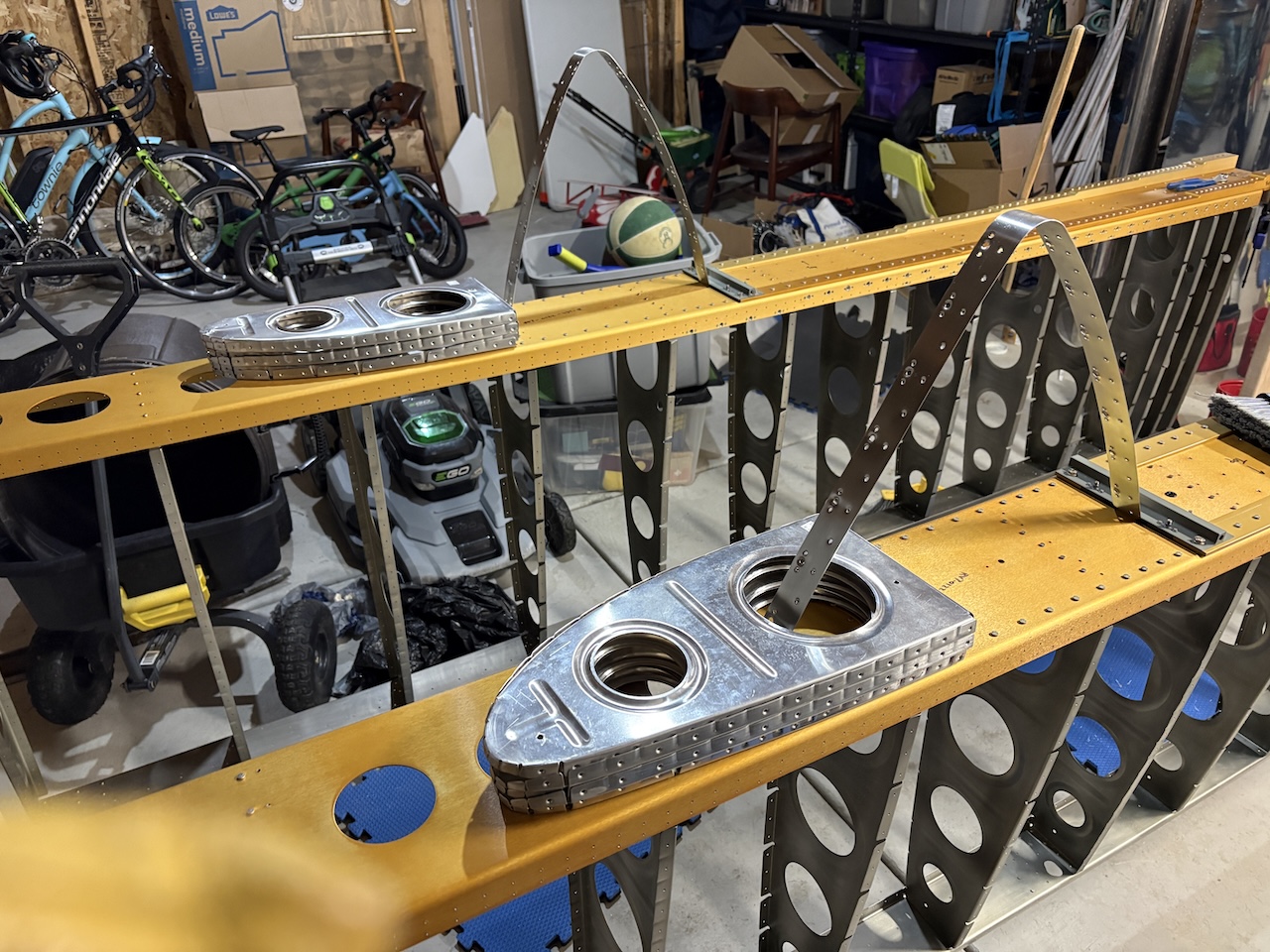 I need to do the dimples on the main wing ribs, and rear spar, counter sink the main spar, and redo the nutplates on the main spar now that the correct ones have arrived. I also need to taper the edges of the corners of the top main skins. Once all that prep work gets done, I can move onto priming parts, and then riveting the leading edge and main skins!
