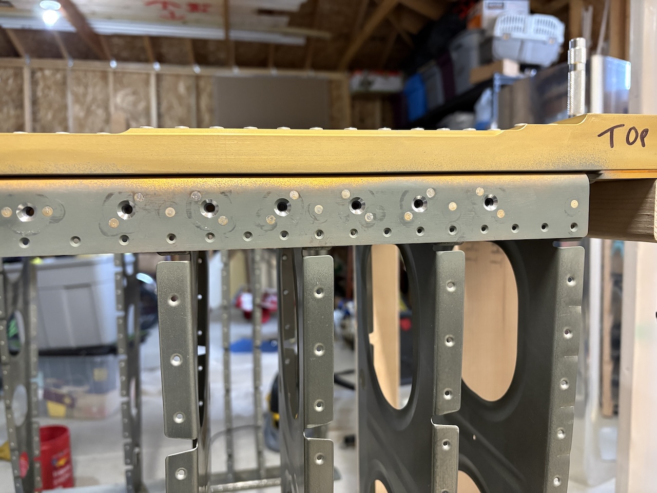 I took the opportunity to deepen the tank screw countersinks in the spar, as I now have the correct nutplate on there and can go the correct depth. I also squeezed the top rivet in each wing rib under the tank. It sits under the tank skin and only goes through the spar and the rib so I got those now with the squeezer.
