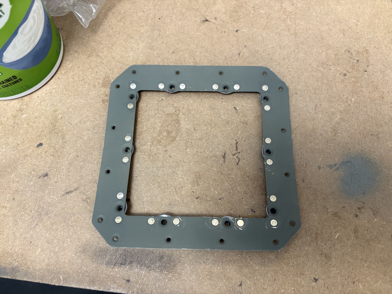 I screwed on the access hole cover plate just to see how it looked. The screws aren't tight in this picture, it's just sort of floating in place. I didn't want to tighten it down because the primer isn't fully cured and I don't want it to stick and glue itself into place, but I also don't want to lose the panel or scratch it up so I just attached it loosely.